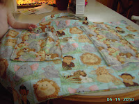 And I loved how I ended up “wrapping” it. Anyone who knows me knows wrapping gifts is not a strong suit. But this went together well. I put a layer of diapers on the bottom of the basket, then a couple cute kids books and the jungle ensemble on top. I was so pleased with myself, I carried it outside so hubby could see it before I headed off to the shower.