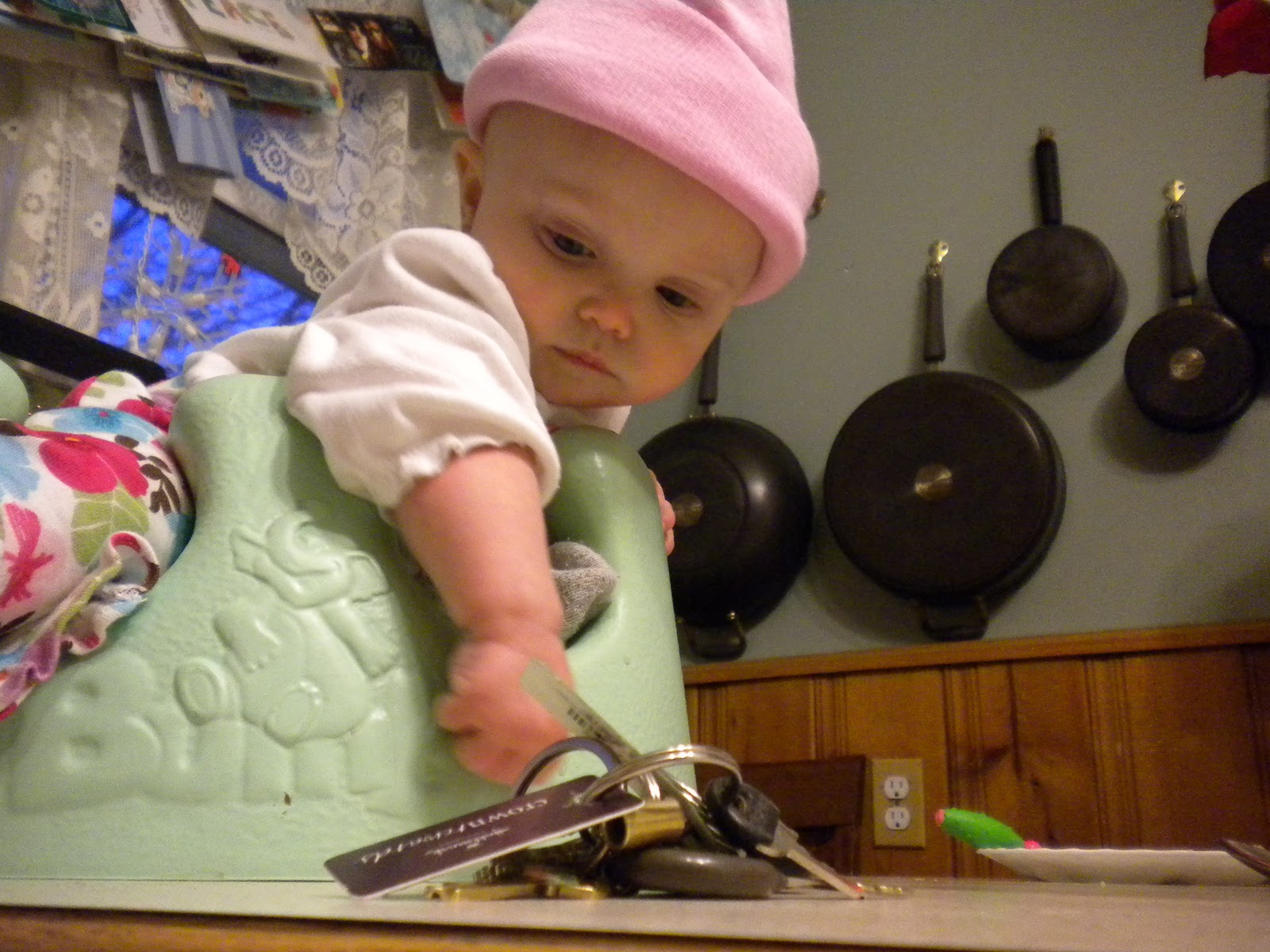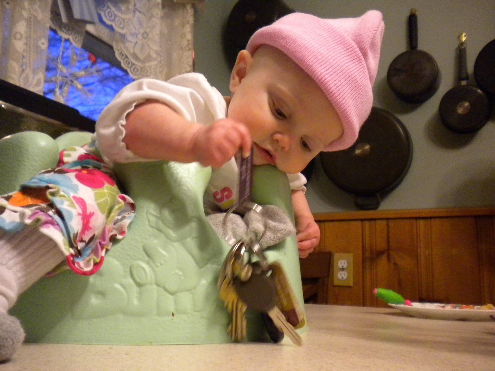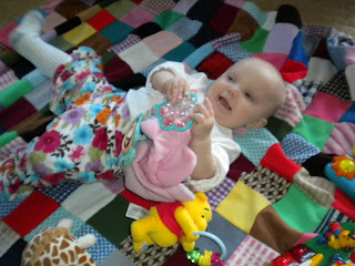 Patrice is learning to play. Yesterday she was really getting into her toys for the first time. She had fun, we had fun.