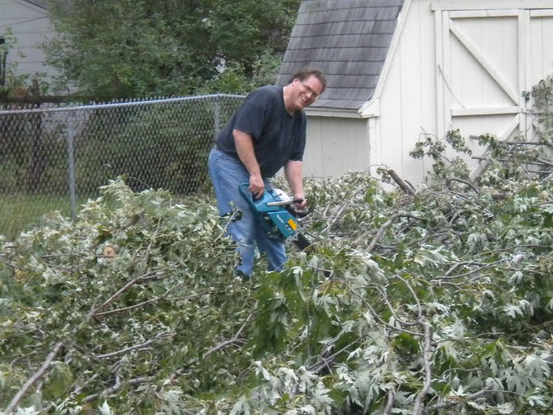 | Recent storm damage made daddy Mr. Lumberjack |