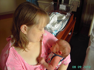 I was not having any major contractions by the time hubby got up for work, so I told him to go ahead and we planned for him to meet us at the midwife office. Thankfully I was able to get ahold of him when the office called to have us come in earlier. So the whole family tromps in for our appointment.