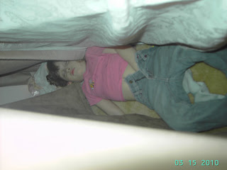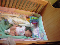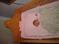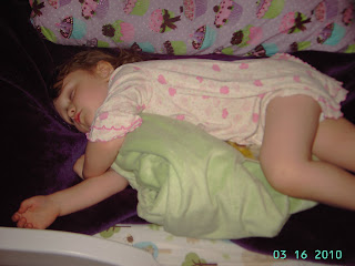 I slept great until about 1:30 this morning. Then I drifted in and out for awhile. I realized at some point that hubby was not upstairs, so I went looking for him. He had crashed on the couch after putting Caitlyn to bed. I told him to go to bed (poor guy had to get up at 4:30 to go to work today). Only problem was, he fell asleep before I did and I was awake enough that his snoring kept me up. I ended up on the couch. Then the littlest family member decided to practice his/her kickboxing.